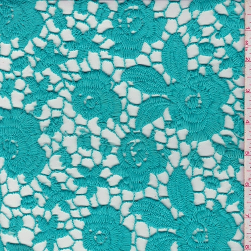 1 3/4 YD PC-Dark Turquoise Floral Guipure Lace Fabric
