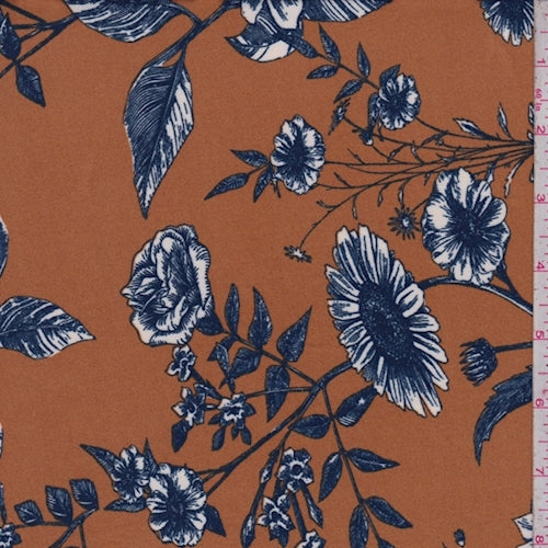 1 5/8 YD PC-Harvest/Blue Floral Brushed Jersey Knit Fabric