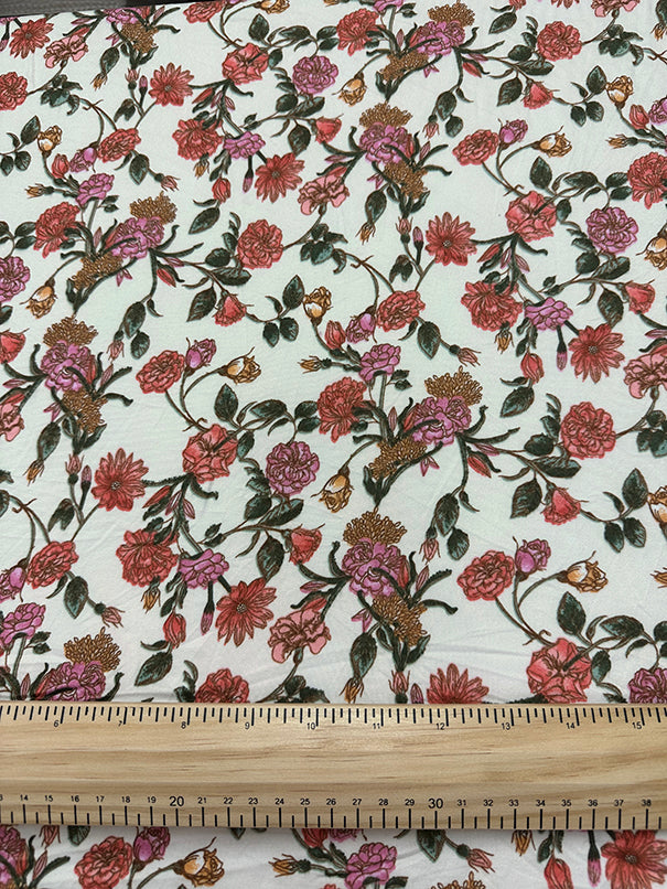 1 7/8 YD PC-Ivory Floral Double Brushed Jersey Knit Fabric