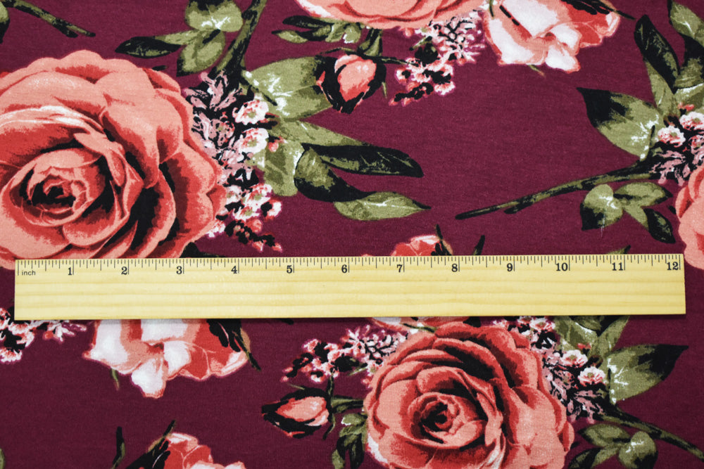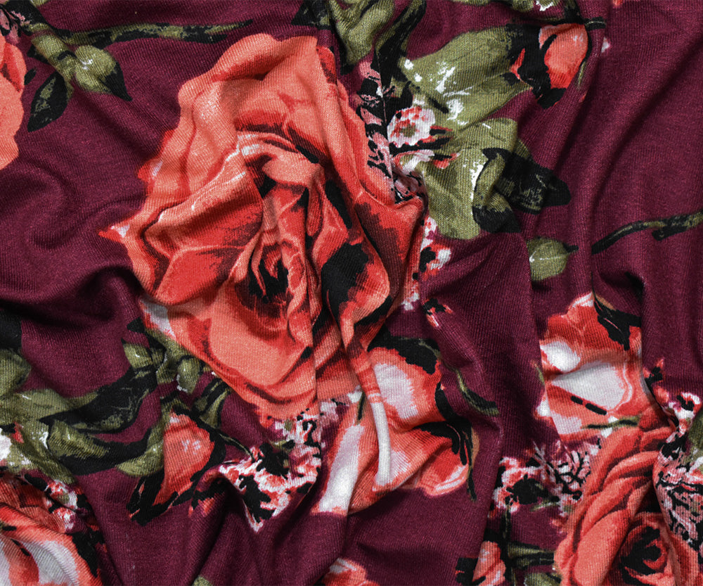 1 YD PC-Red-Coral-Multi Cotton Floral Printed Stretch Spandex Jersey Knit Fabric