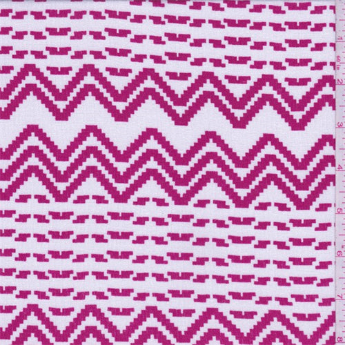 1 YD PC-White/Red Pixelated Stripe Rayon Crepe Fabric
