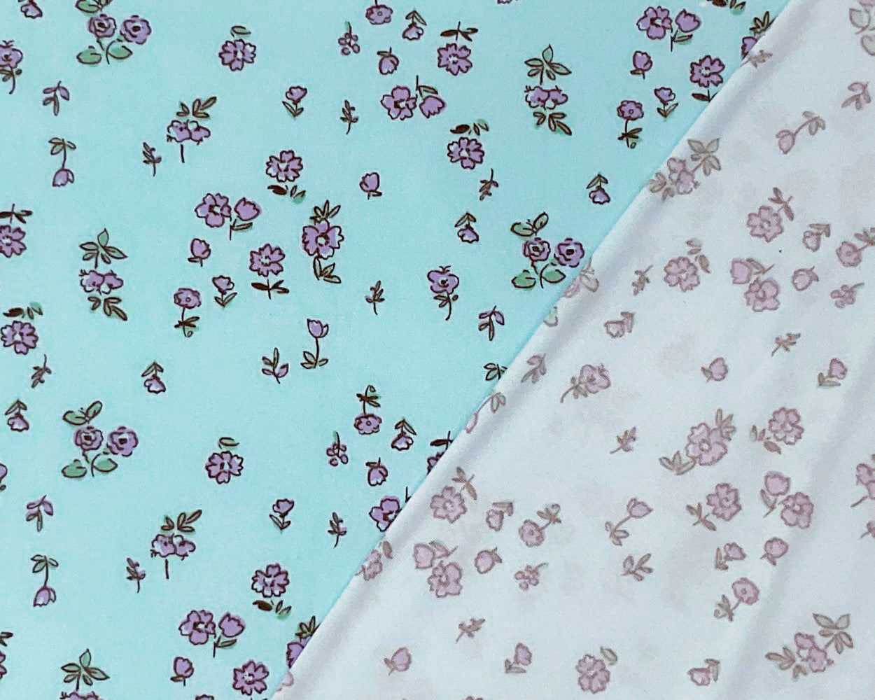 2 1/2 YD PC-Blue-Multi Poly Stretch Spandex Floral Print DB Jersey Knit Fabric
