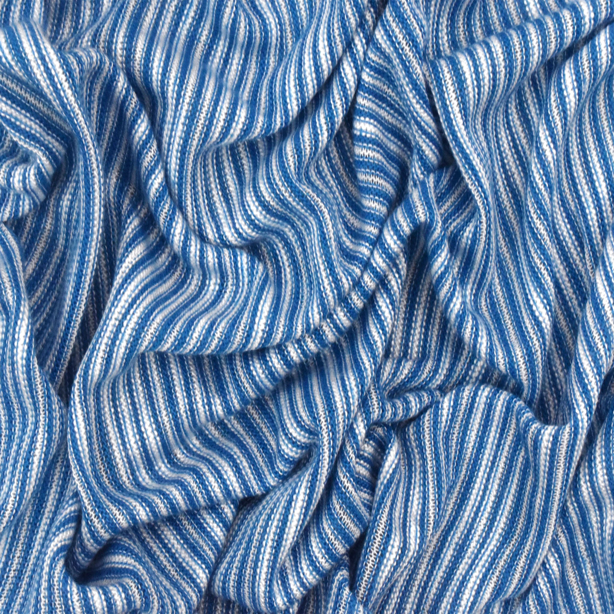 2 1/2 YD PC-Ocean Blue-White Stripe Stretch Jersey Knit Fabric