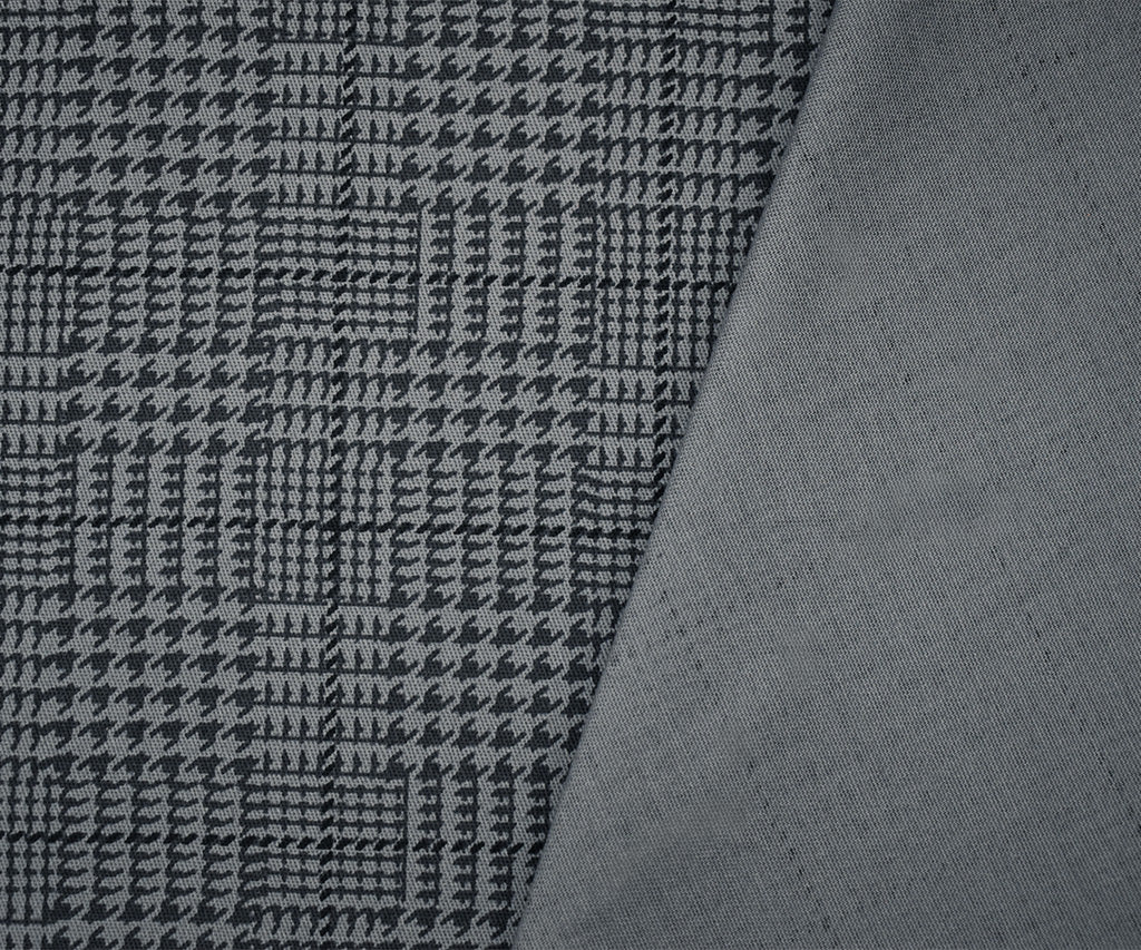 2 1/8 YD PC-Black-Gray Cotton Abstract Glen Plaid Print Stretch Twill Woven Fabric