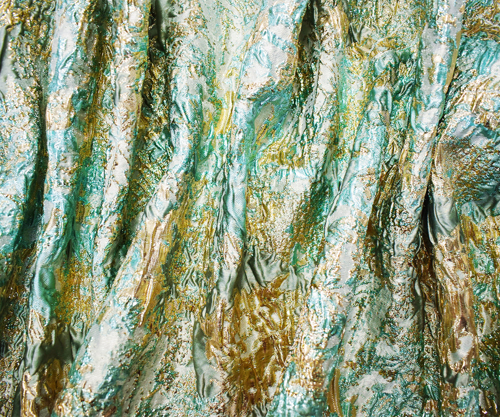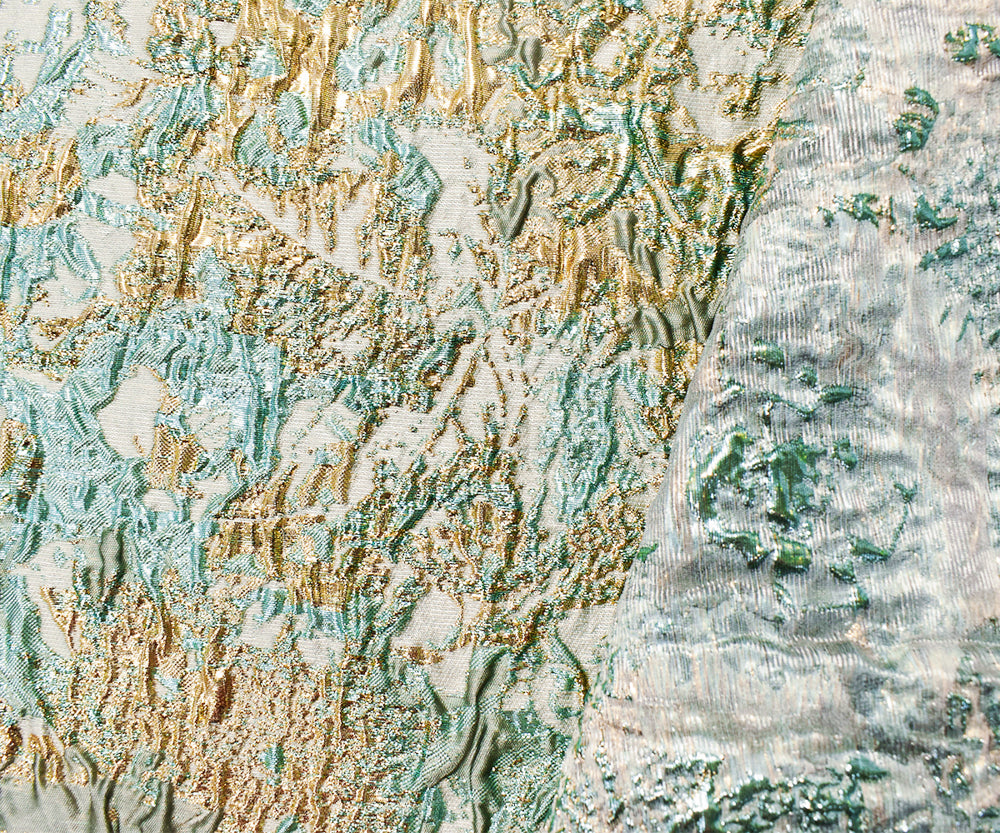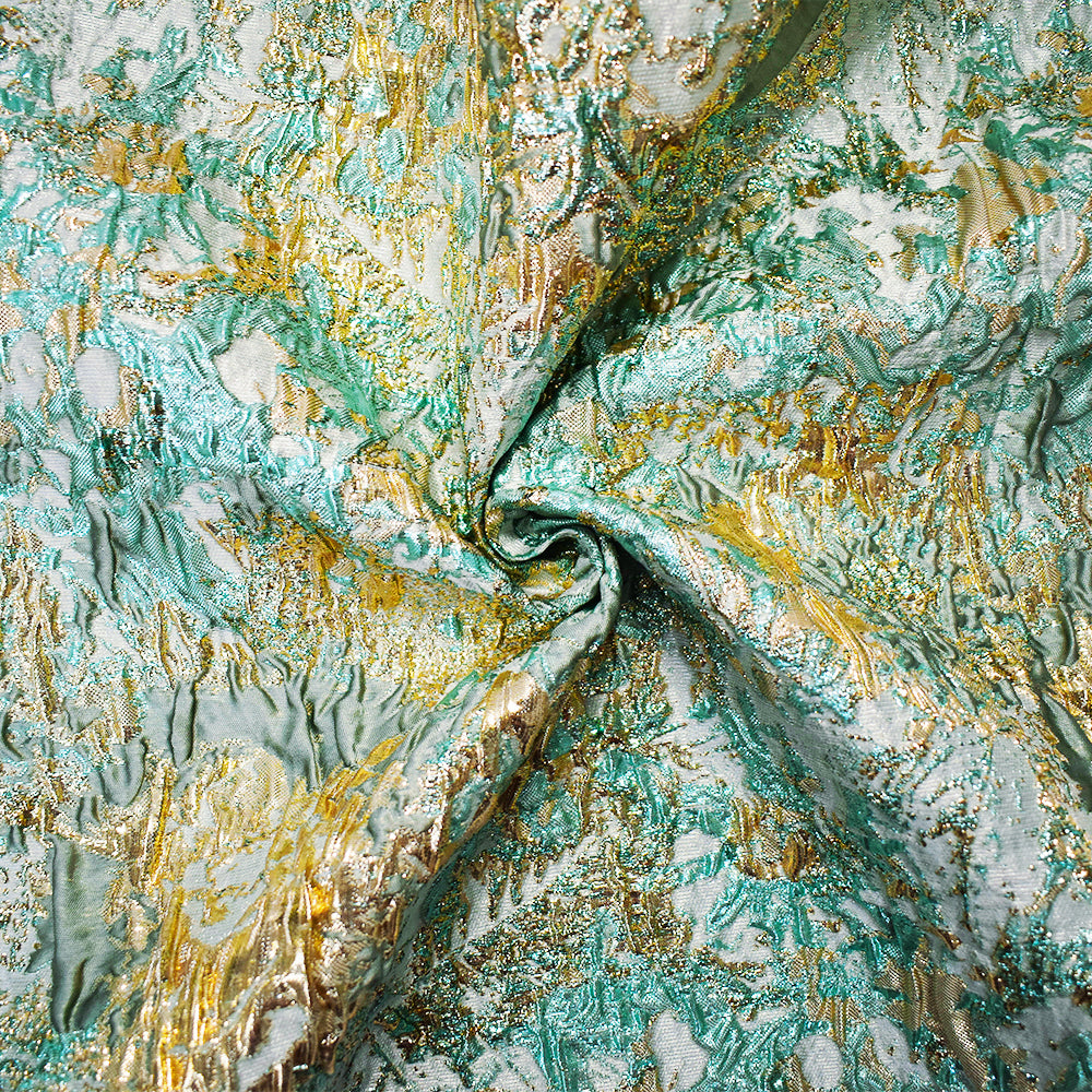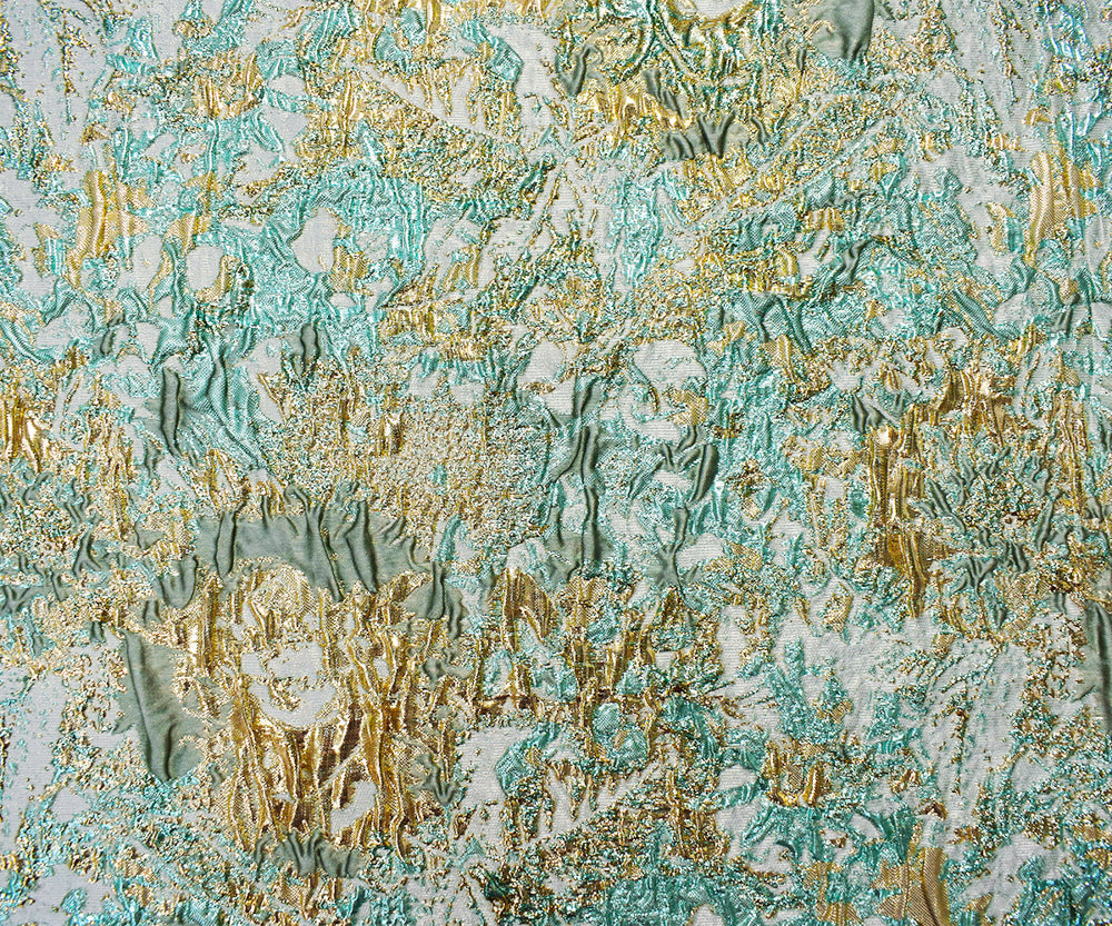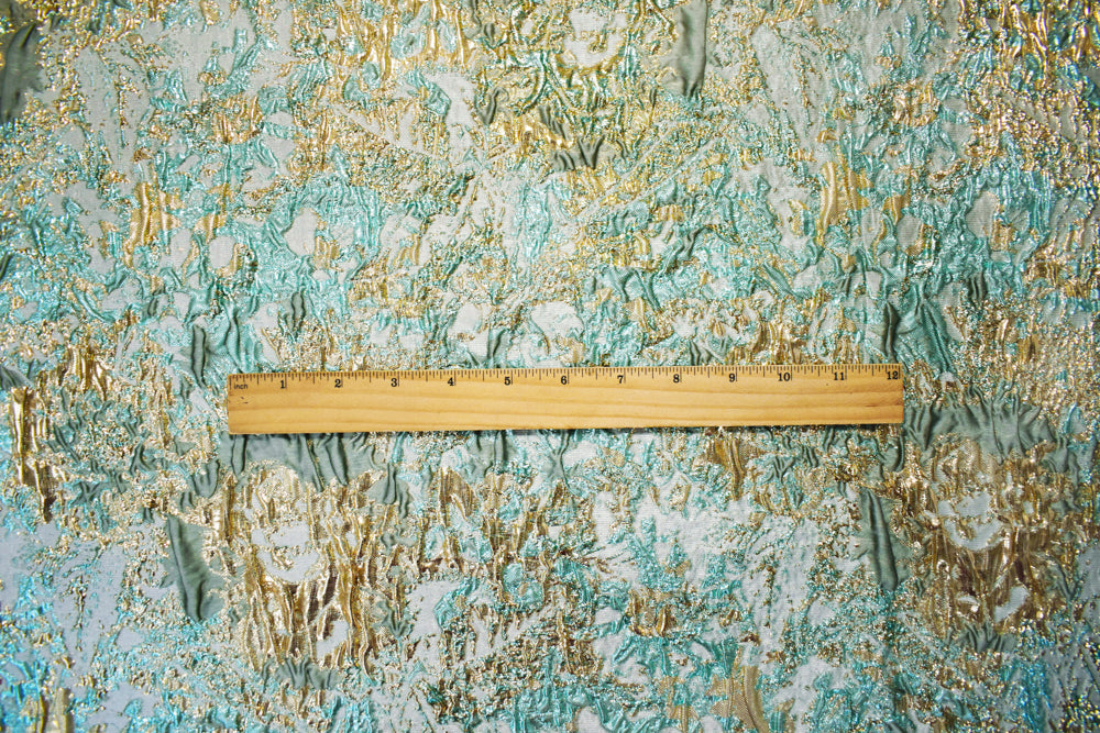 2 3/4 YD PC-Teal-Gold-Multi Poly Blend Abstract Matelasse Jacquard Brocade Fabric