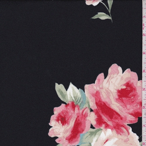 2 YD PC-Black/Beige Floral Bloom Crepe Gabardine Fabric