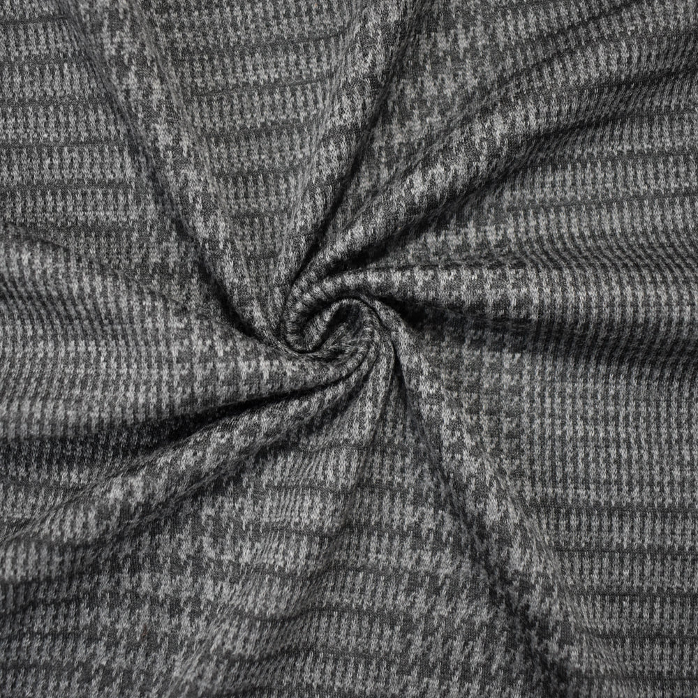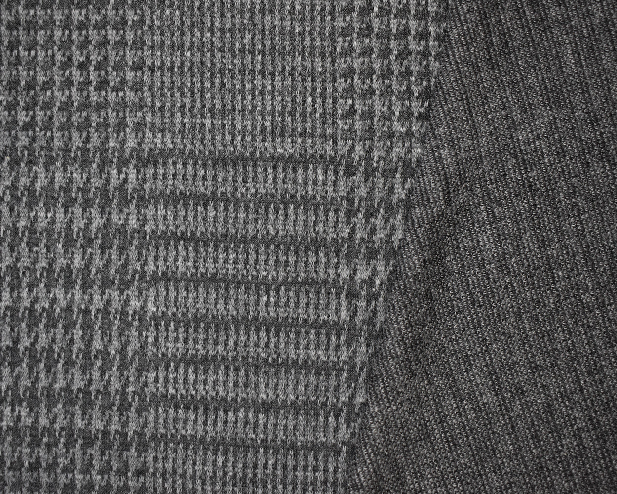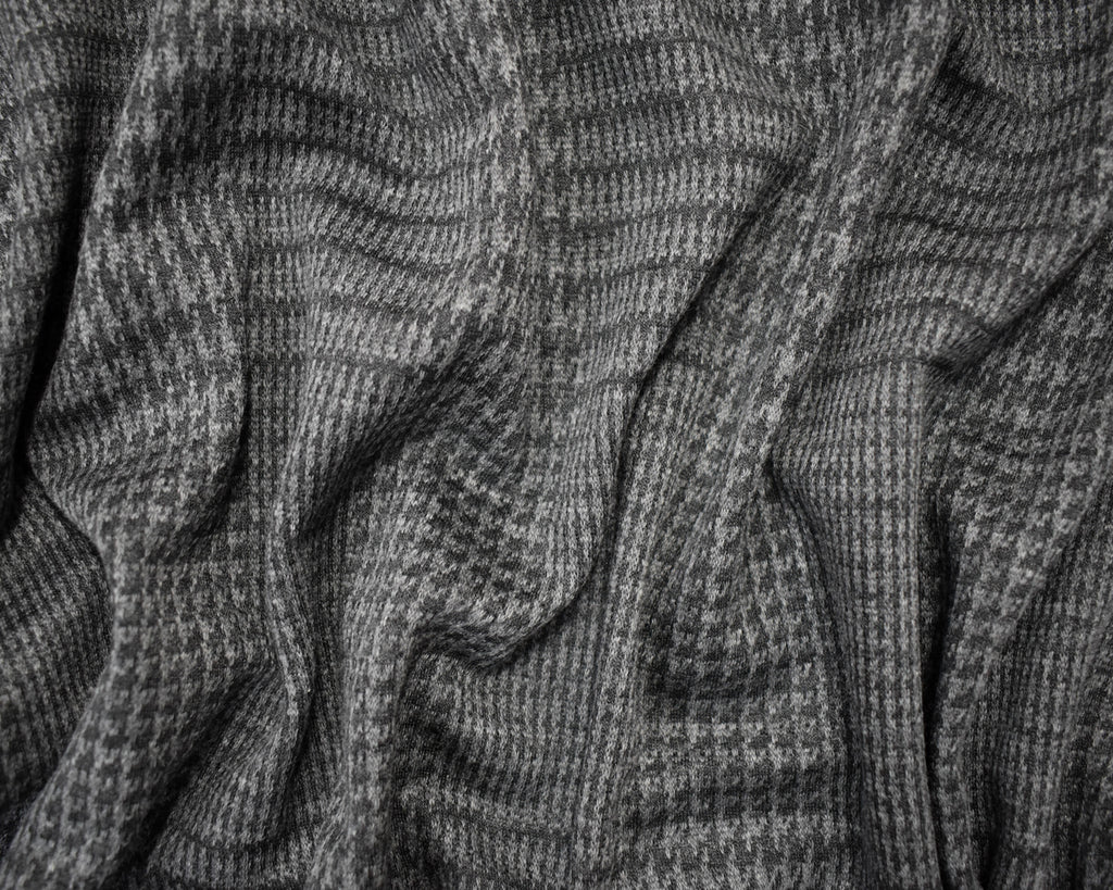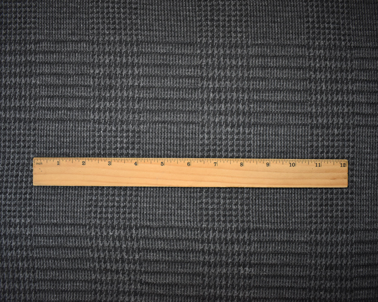 2 YD PC - Black-Gray Cotton Wool Spandex Stretch Houndstooth Jacquard Double Knit Fabric