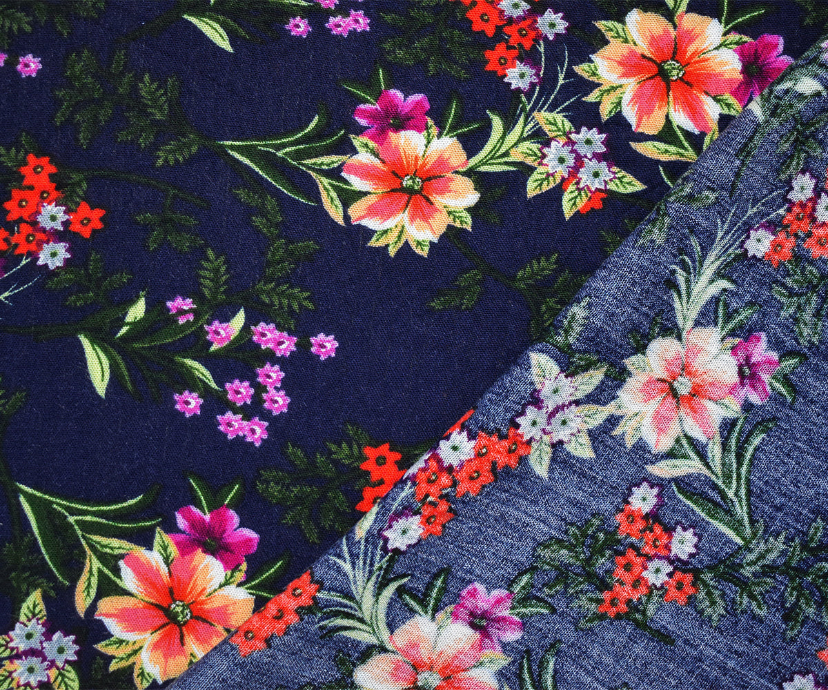 2 YD PC-Navy-Red-Multi Cotton Floral Printed Gauze Woven Fabric