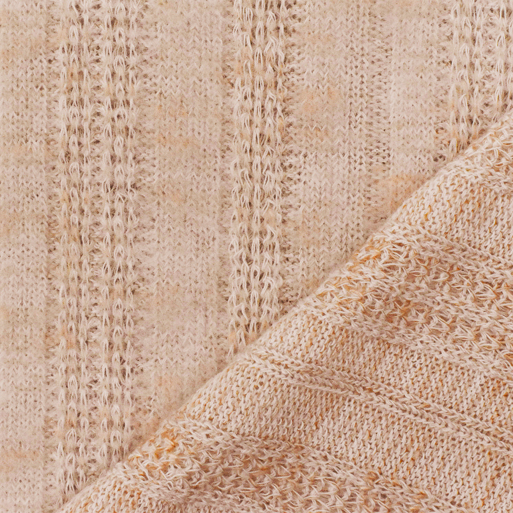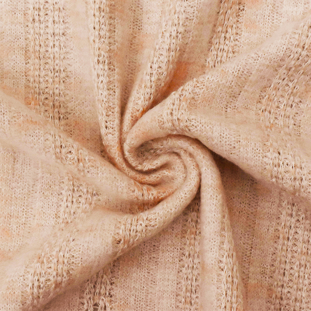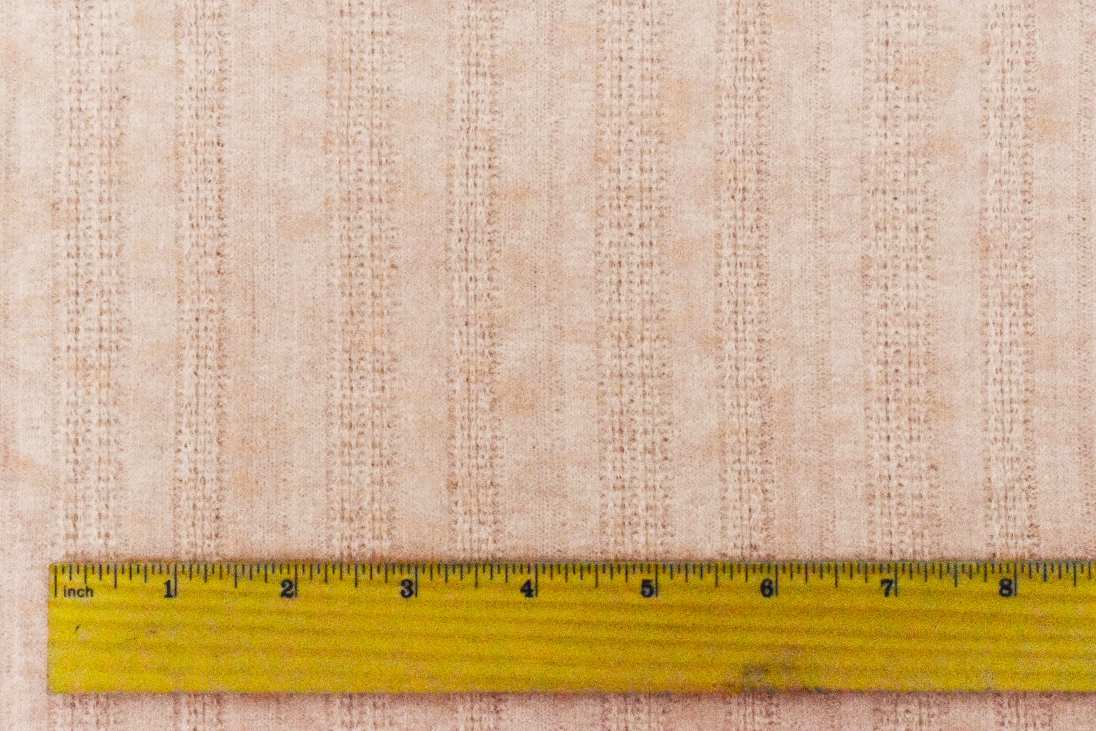 2 YD PC-Peach-White Texture Stretch Spandex Poly Blend Brushed Rib Knit Fabric