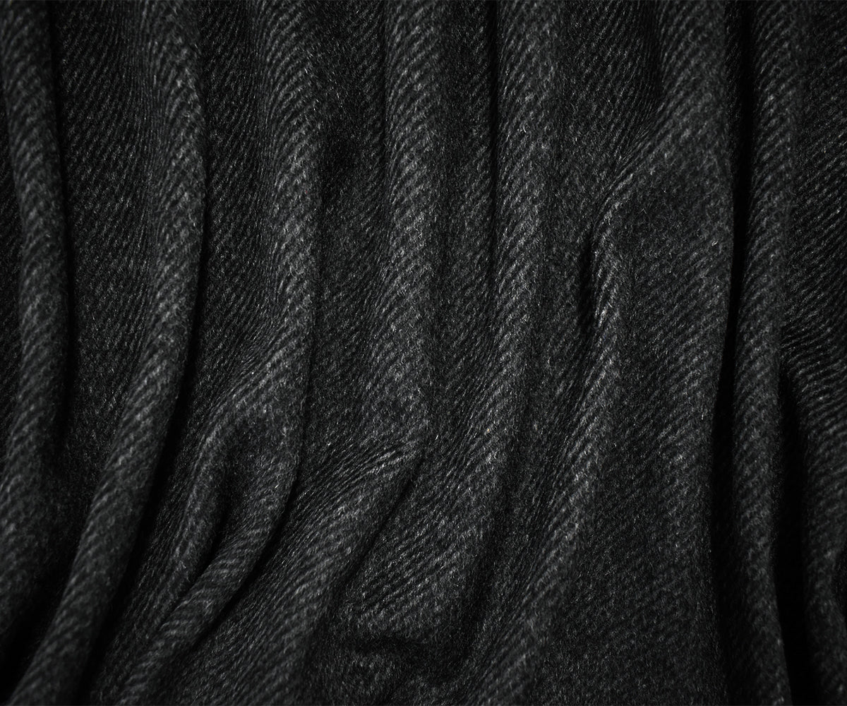 -3 1/2 Yard Piece Black-Gray Wool Rayon Slub Double Brushed Twill Woven Jacketing Fabric