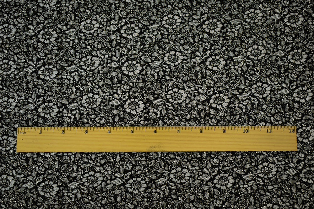 3 1/4 YD PC-Black-Gray-Gold Rayon Blend Stretch Spandex Floral Bengaline Jacquard Fabric