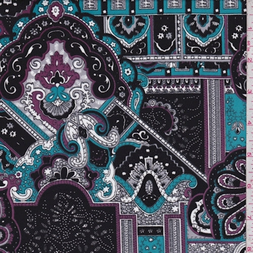 3 YD PC-Black/Teal/Purple Moroccan Crepe Georgette Fabric