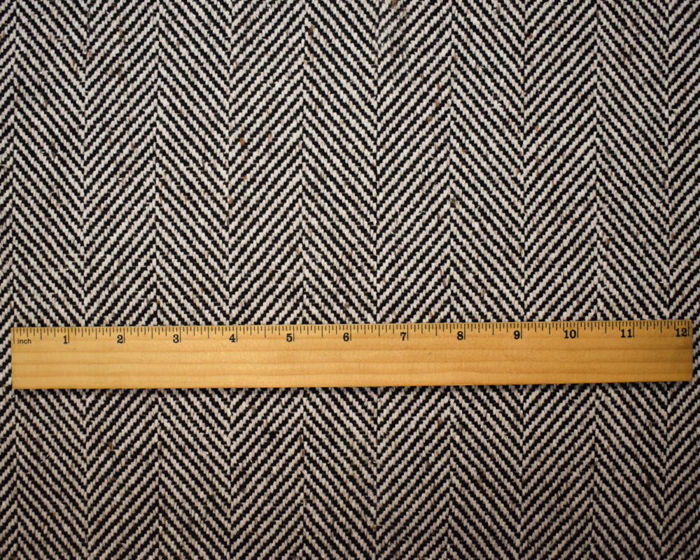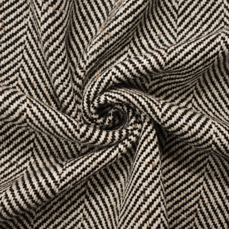 -3 YD PC-Black-White Wool Cotton Herringbone Twill Woven Jacketing Fabric
