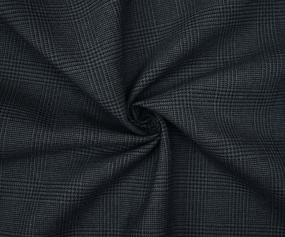 3 YD PC-Dark Navy-Gray Poly Wool Blend Glen Plaid Twill Suiting