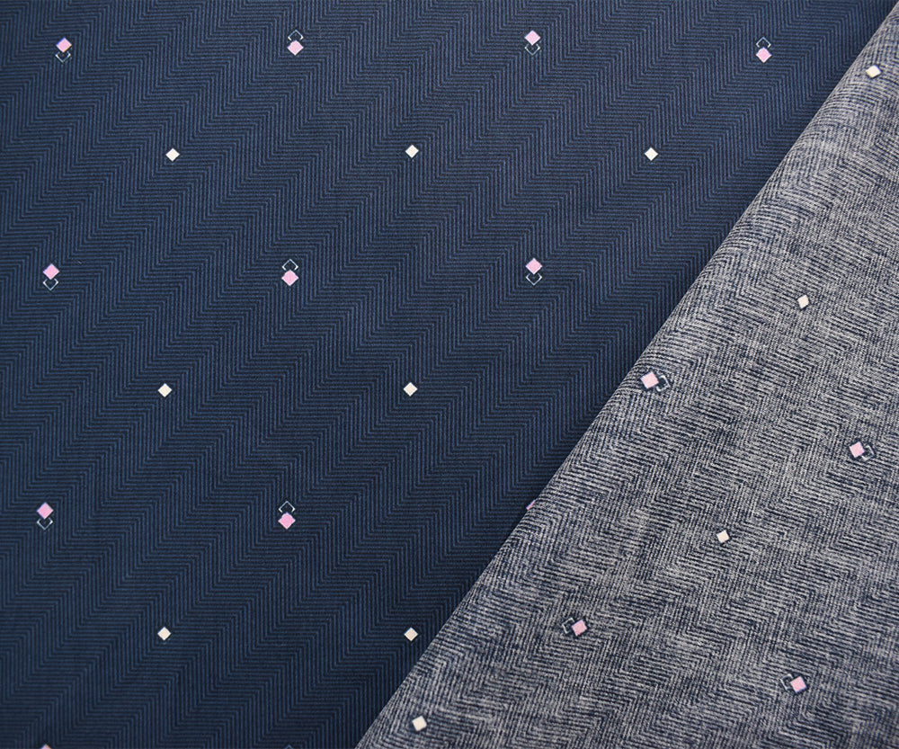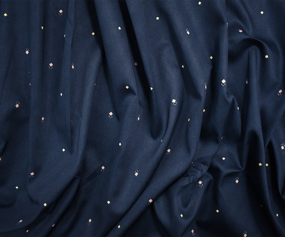3 YD PC-Navy-Purple-Multi Japanese Cotton Geometric Printed Sateen Woven Fabric