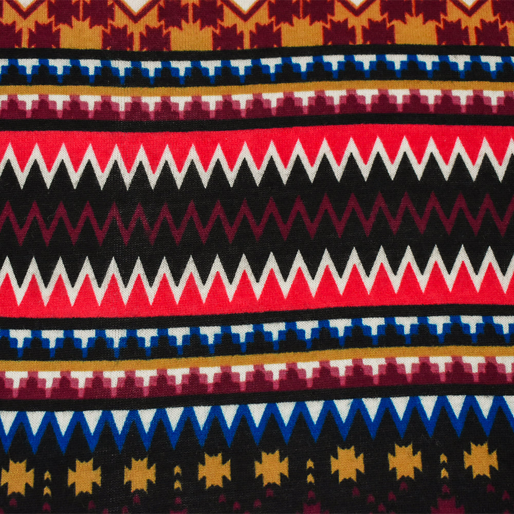 3 YD PC-Red-Brown-Multi Poly Stretch Spandex Aztec Printed Brushed Face Double Knit