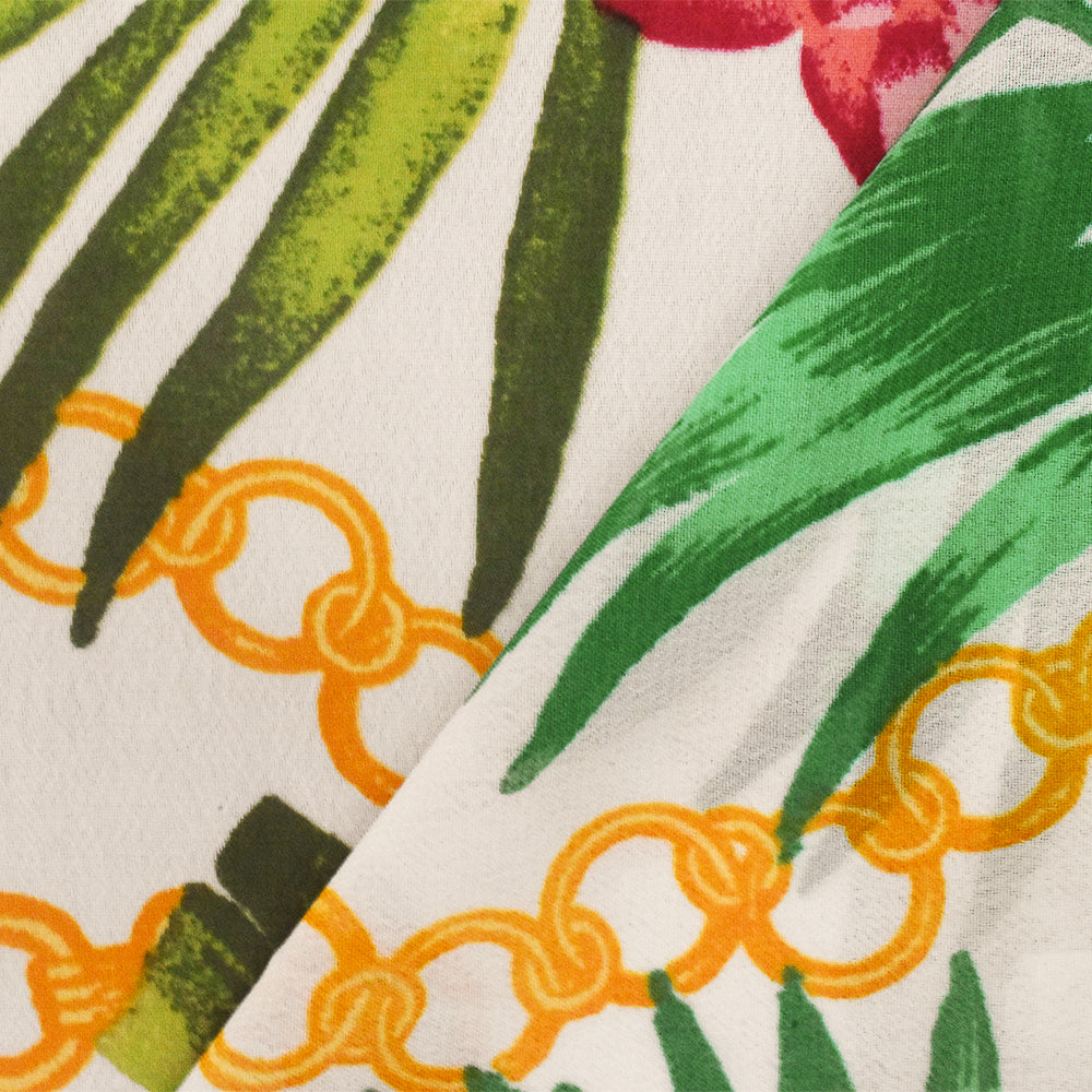 4 1/8 YD PC-White-Green-Multi Floral And Chain Printed Poly Chiffon Woven Fabric