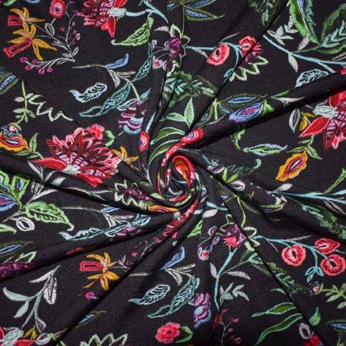 4 7/8 YD PC -Soft hand rayon jersey knit printed with a stylized floral pattern