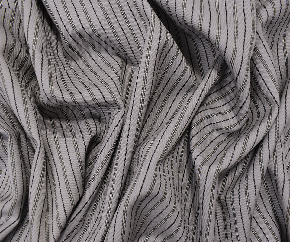 4 YD PC-Gray-Black Poly Wool Stripe Twill Woven Suiting Fabric