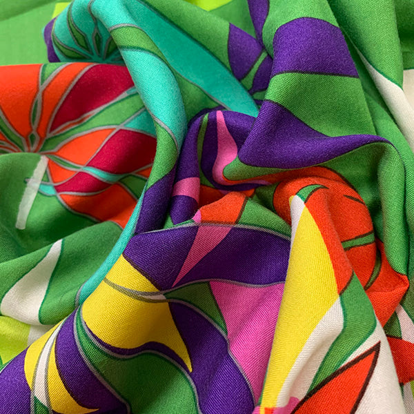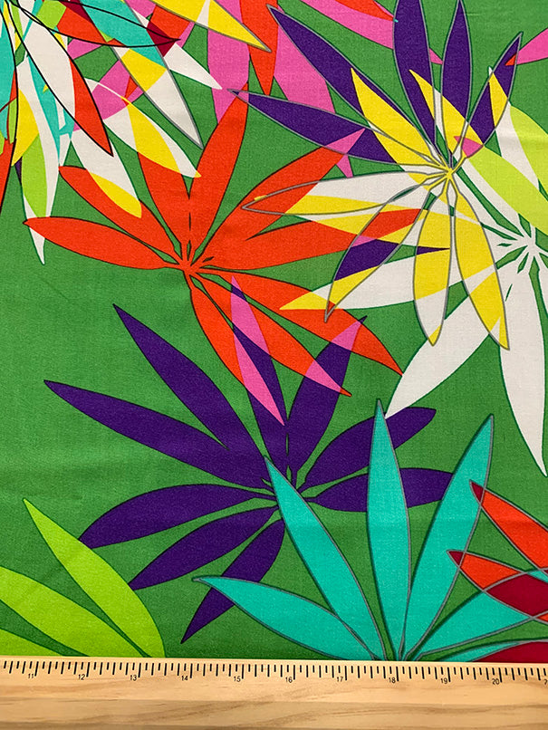 4 YD PC-Green Multi Palm Frond Print Rayon Challis Fabric