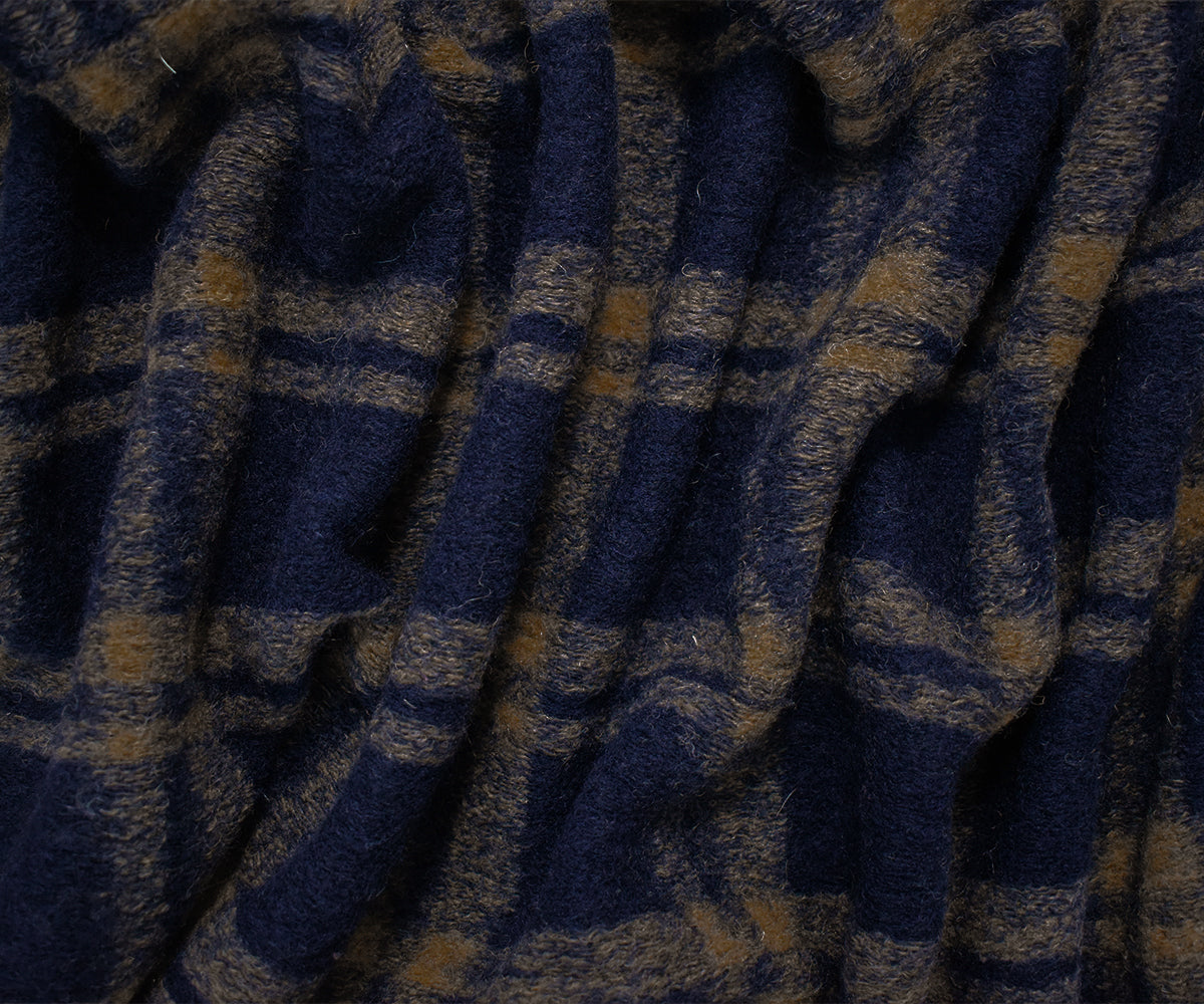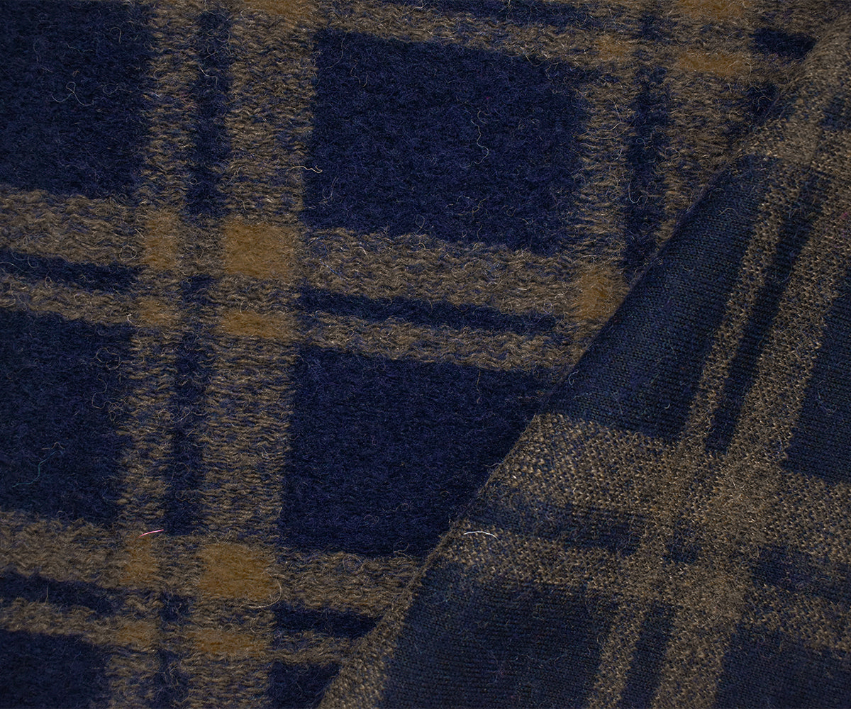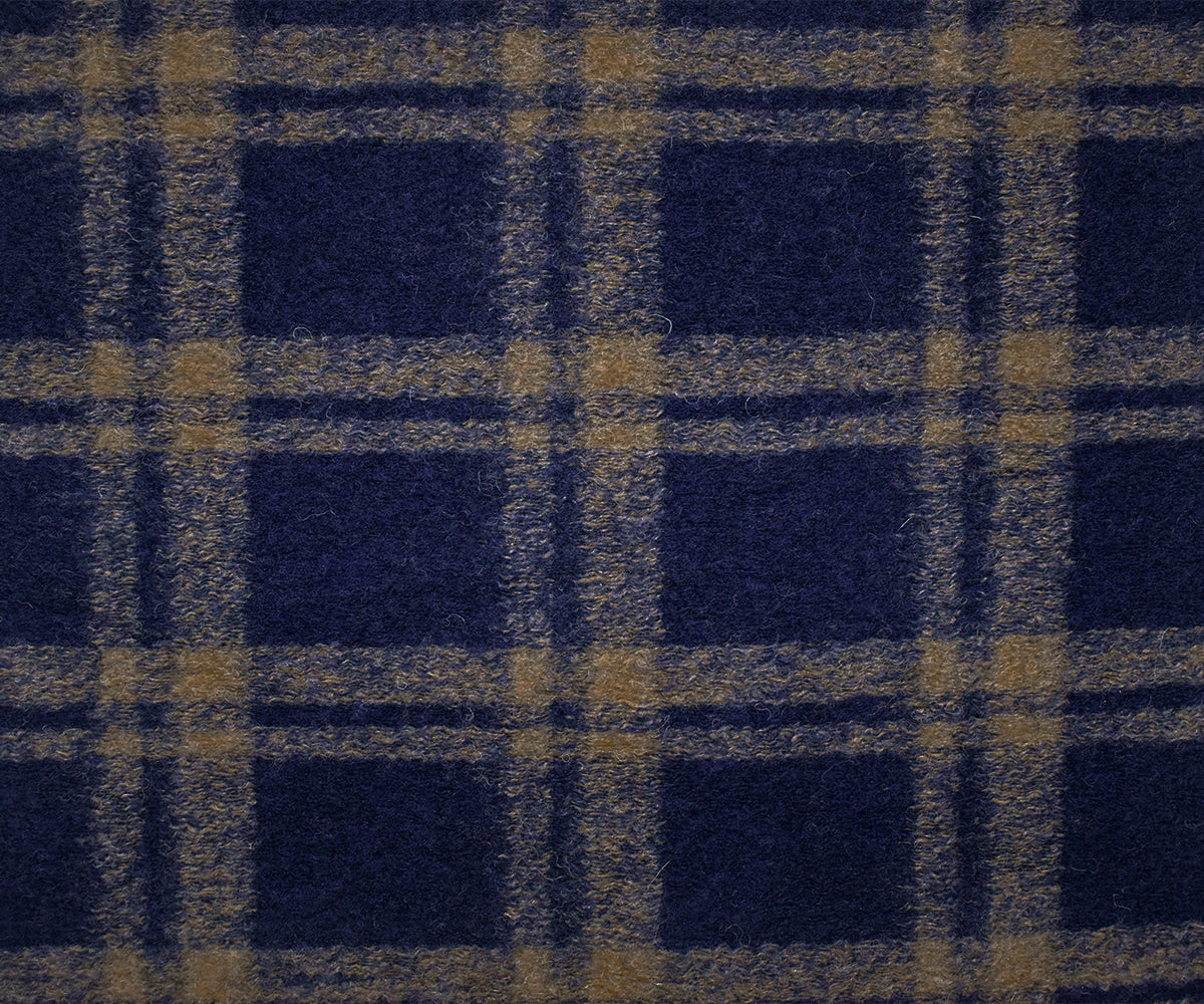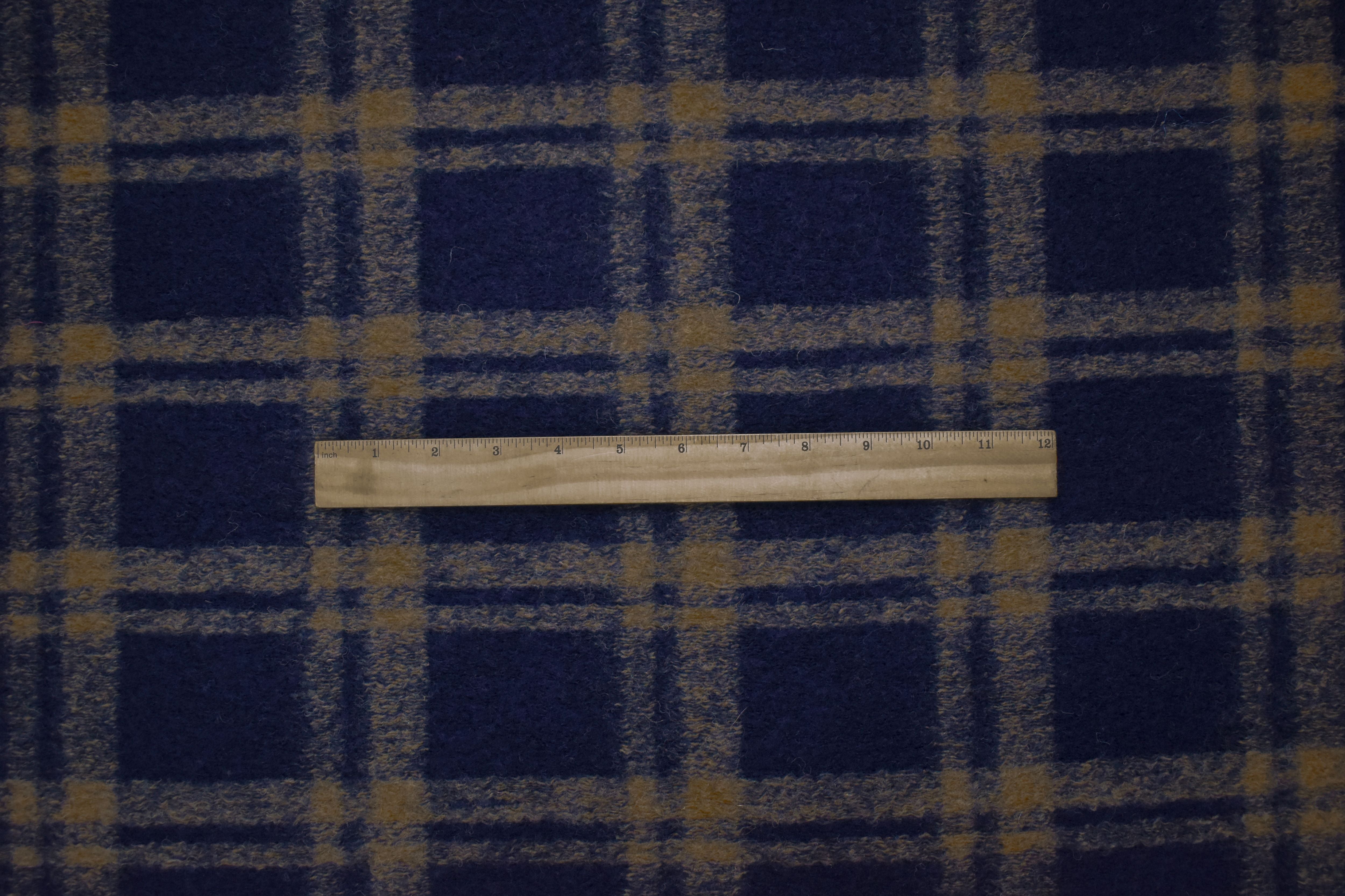 5 YD PC-Deep Navy-Brown Italian Boiled Wool-Poly Plaid Check Knit Coating Fabric
