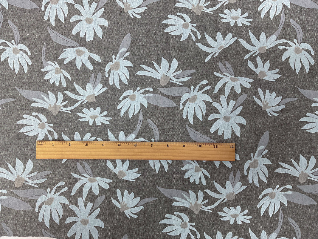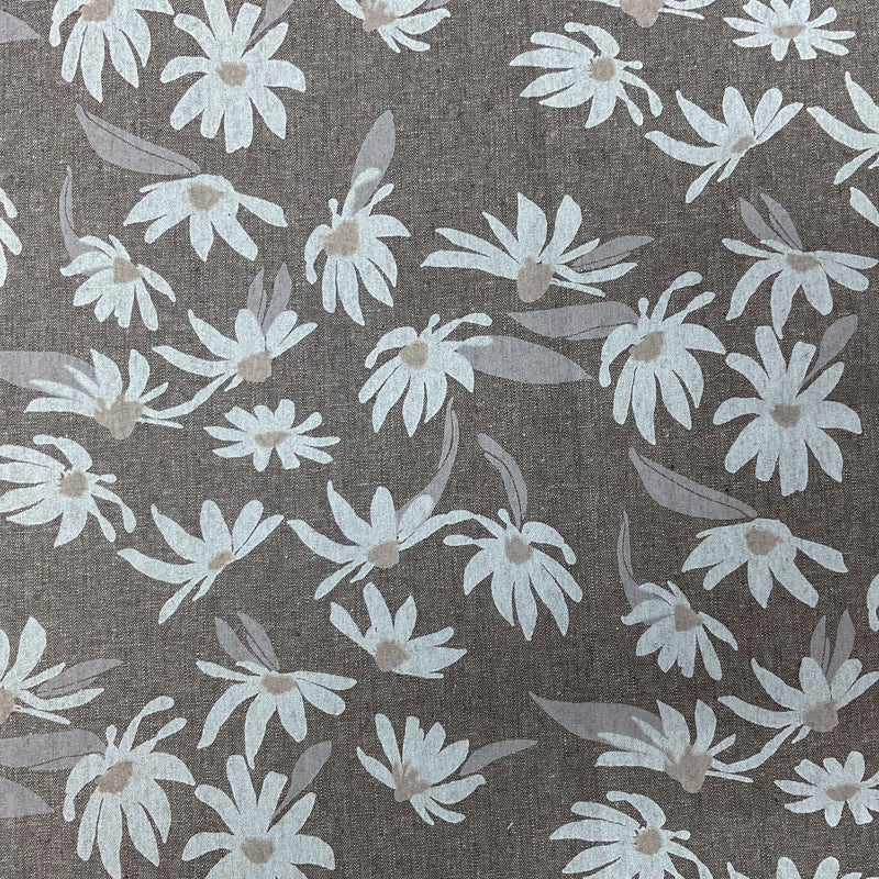 6 YD PC- Brown-Tan-Ecru Flowers Print Around the Bend Linen-Cotton Blend Remnant Fabric