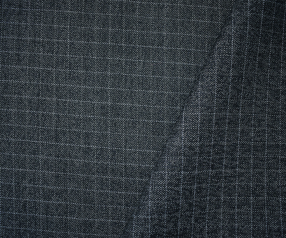 7 YD PC-Blue-Gray Wool Rayon Check Woven Jacketing Fabric