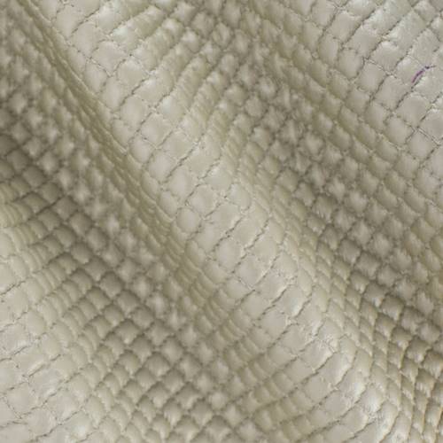 -This matte metallic vinyl faux leather jacketing is quilted with a poly batting material in between a knitted fabric for added warmth and plush texture