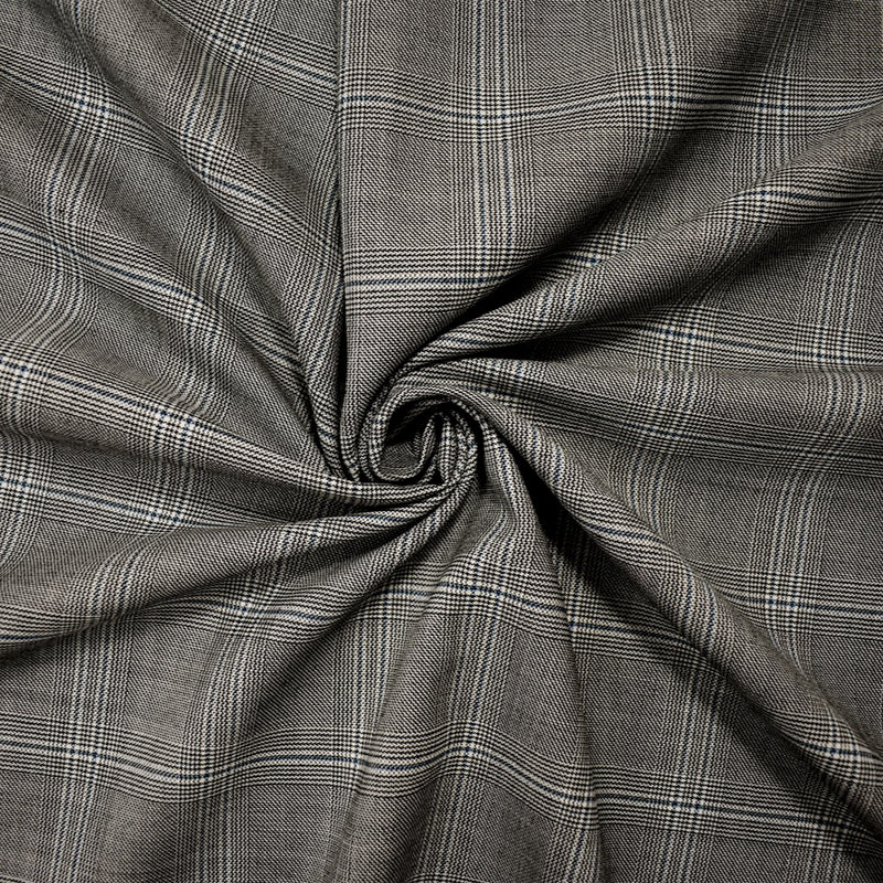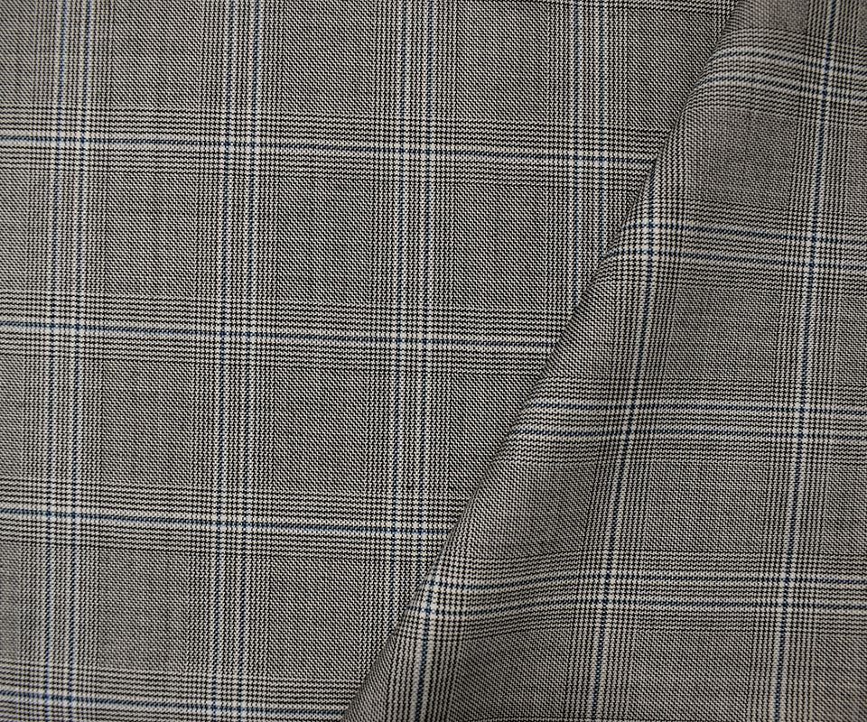 -9 YD PC-Black-White-Blue Wool Poly Plaid Twill Woven Suiting Fabric