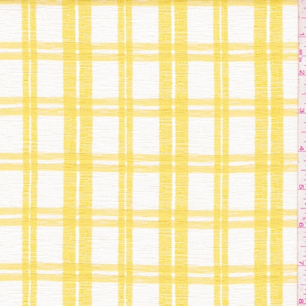 1 1/2 YD PC-White/Sunflower Plaid Woven Drapery Fabric
