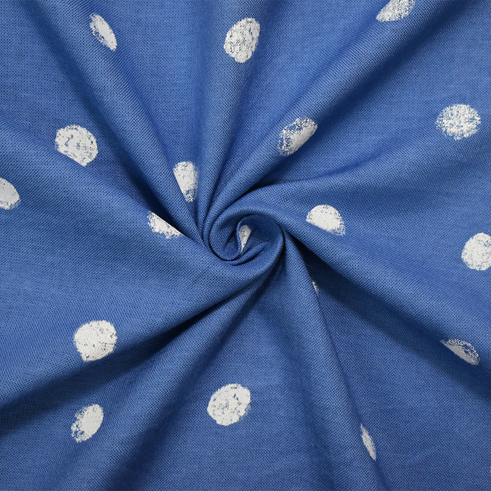 1 1/2 YD PC-Blue-White Cotton Dots Printed Shirting Woven Fabric
