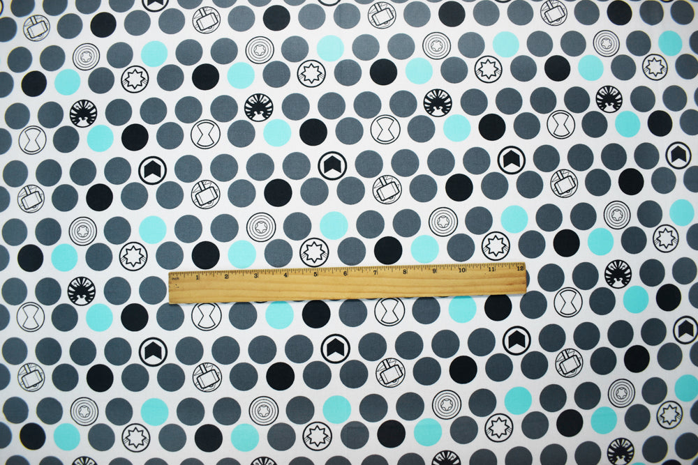 White-Teal-Multi Cotton Marvel Avenger Printed Quilting Woven Fabric
