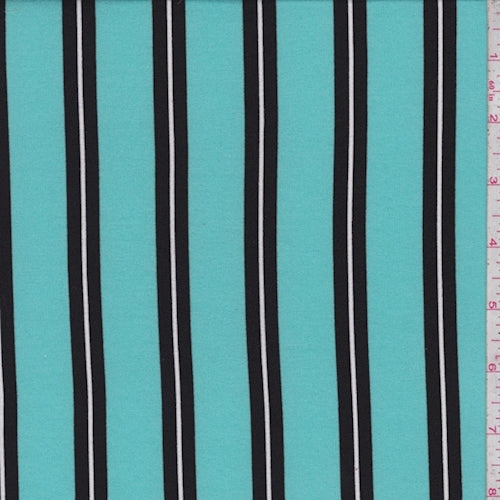 Aqua Green/Black Stripe Double Brushed Jersey Knit Fabric