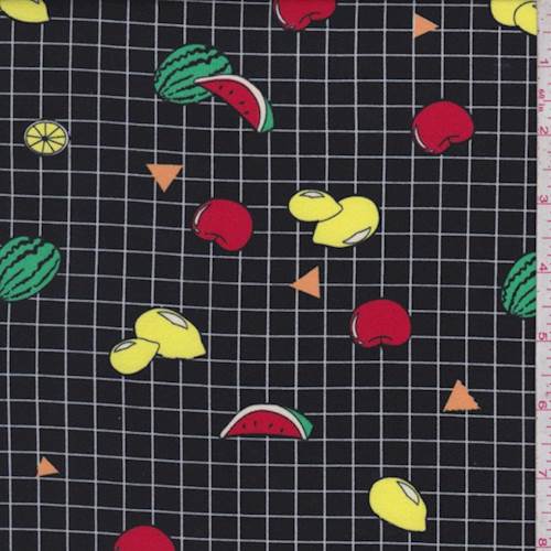 Black Grid/Fruit Double Brushed Jersey Knit Fabric