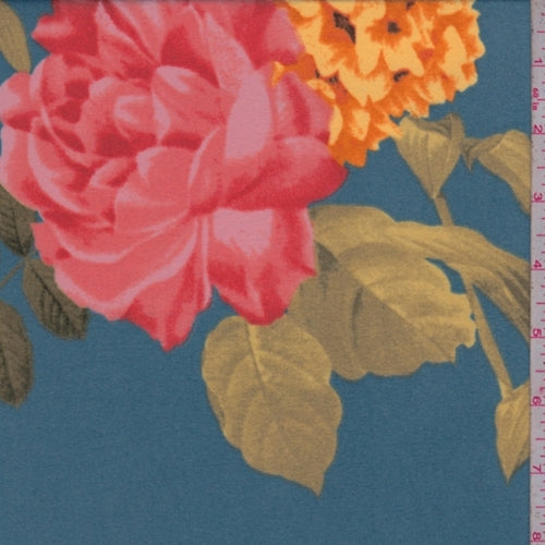 Blue/Salmon/Orange Peony Super Brushed Jersey Knit Fabric