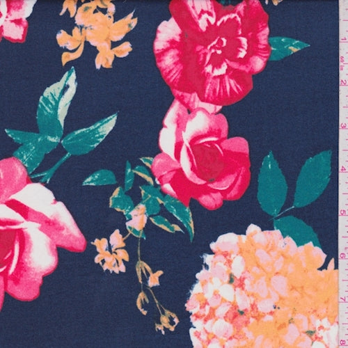 Night Blue Hydrangea/Floral Double Brushed Jersey Knit Fabric