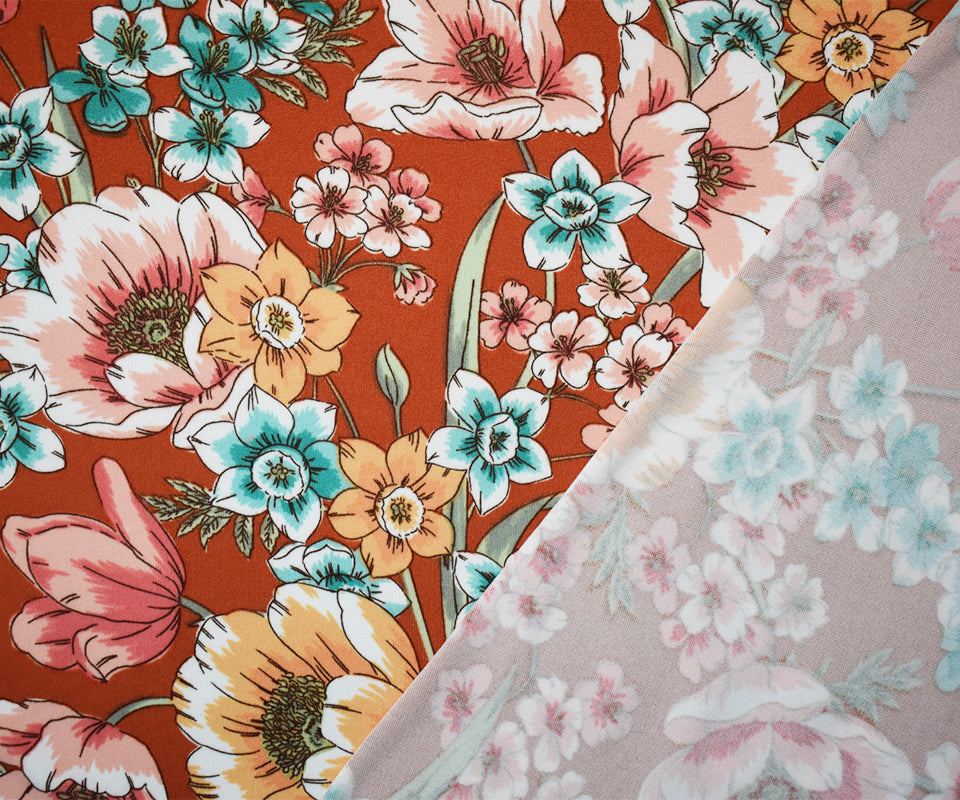 Orange-Multi Poly Stretch Floral Print DB Jersey Knit Fabric