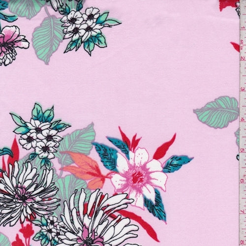 Orchid/Red Multi Fringe Floral Cluster Double Brushed Jersey Knit Fabric