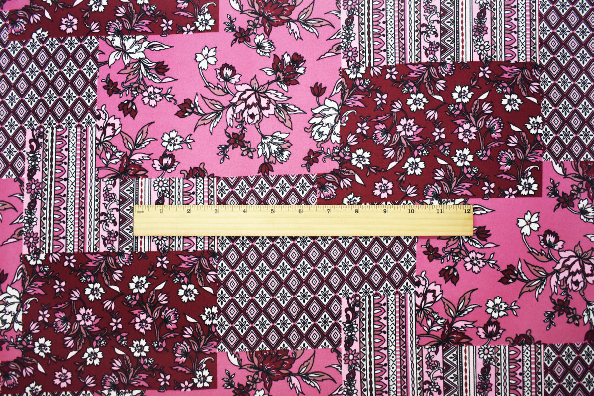 Pink-Multi Poly Stretch Floral Print DB Jersey Knit Fabric