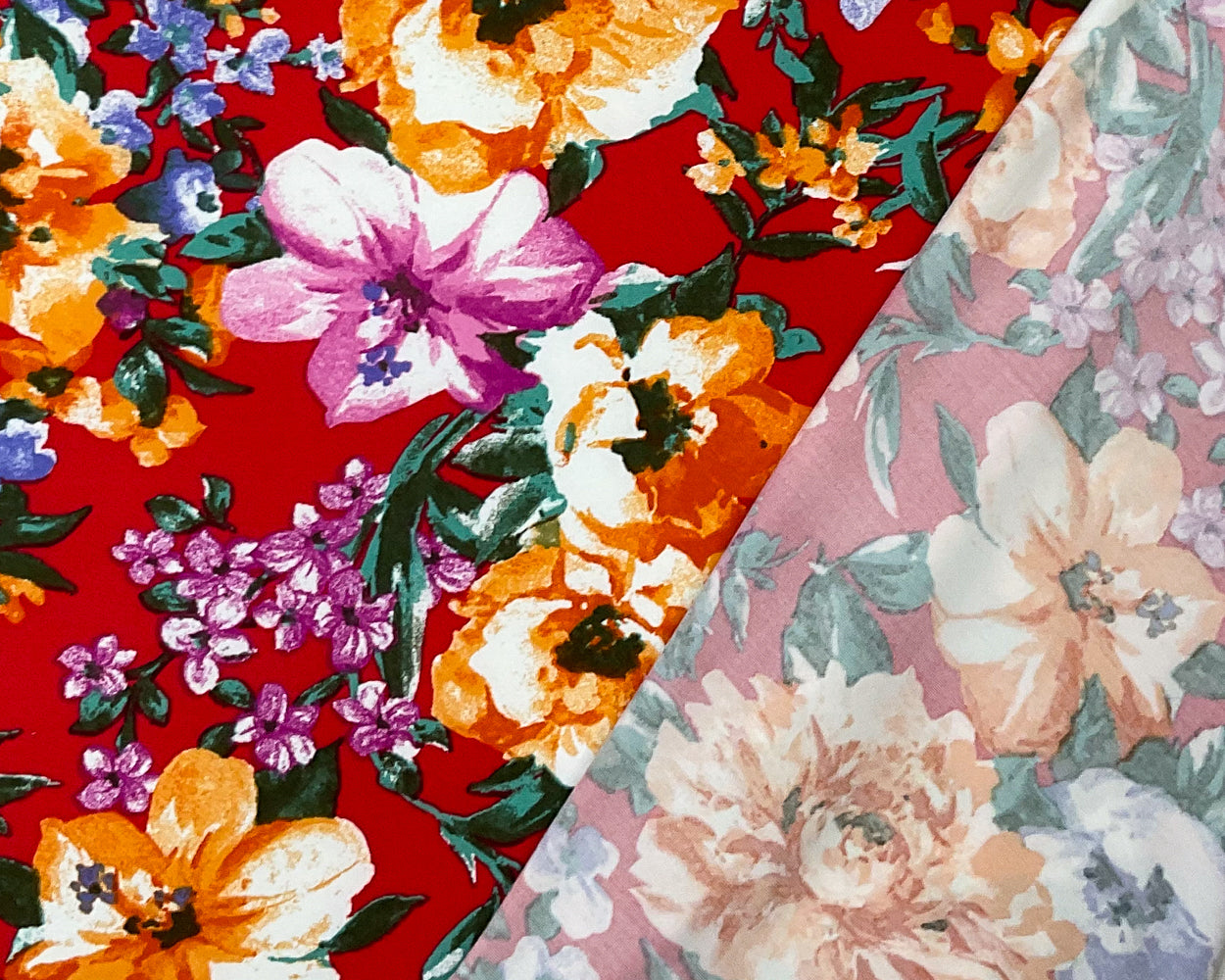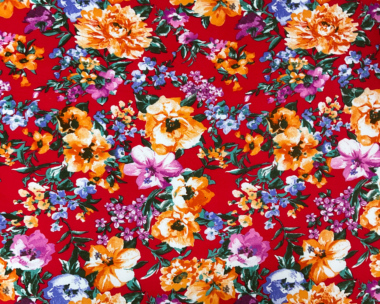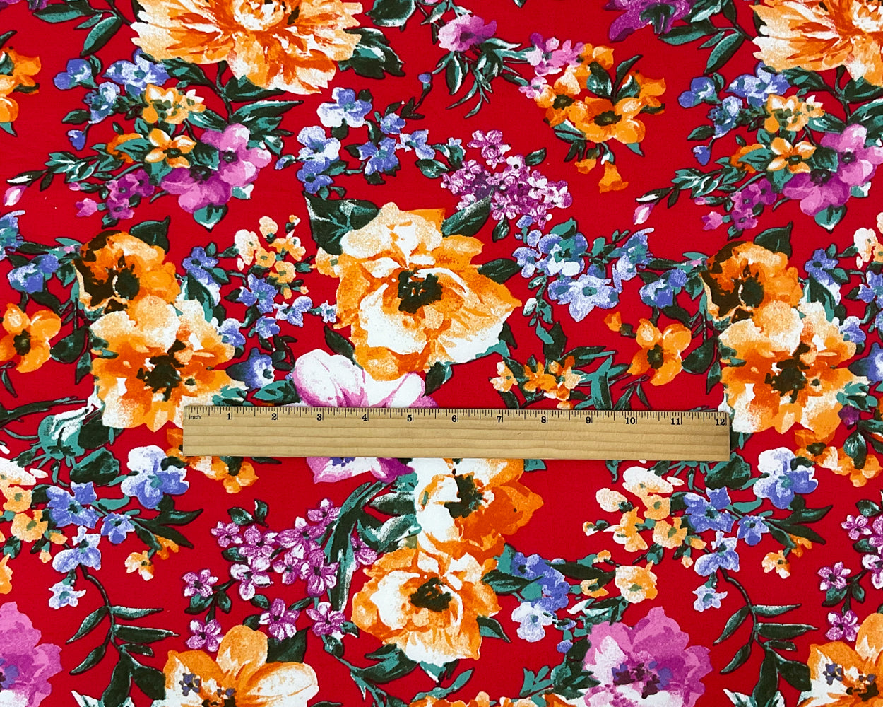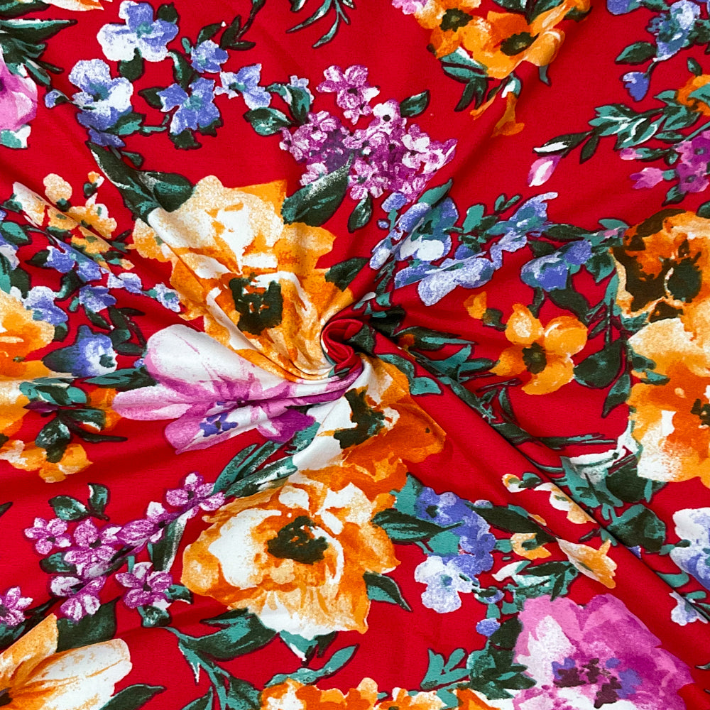 Red-Multi Poly Spandex Stretch Floral Print DB Jersey Knit Fabric