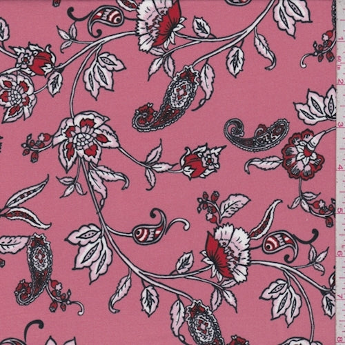 Salmon Stylized Floral Double Brushed Jersey Knit Fabric