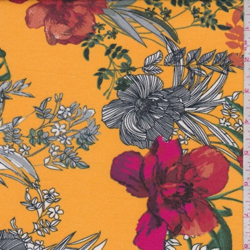 Sunset Gold Multi Sketch Floral Double Brushed Jersey Knit Fabric