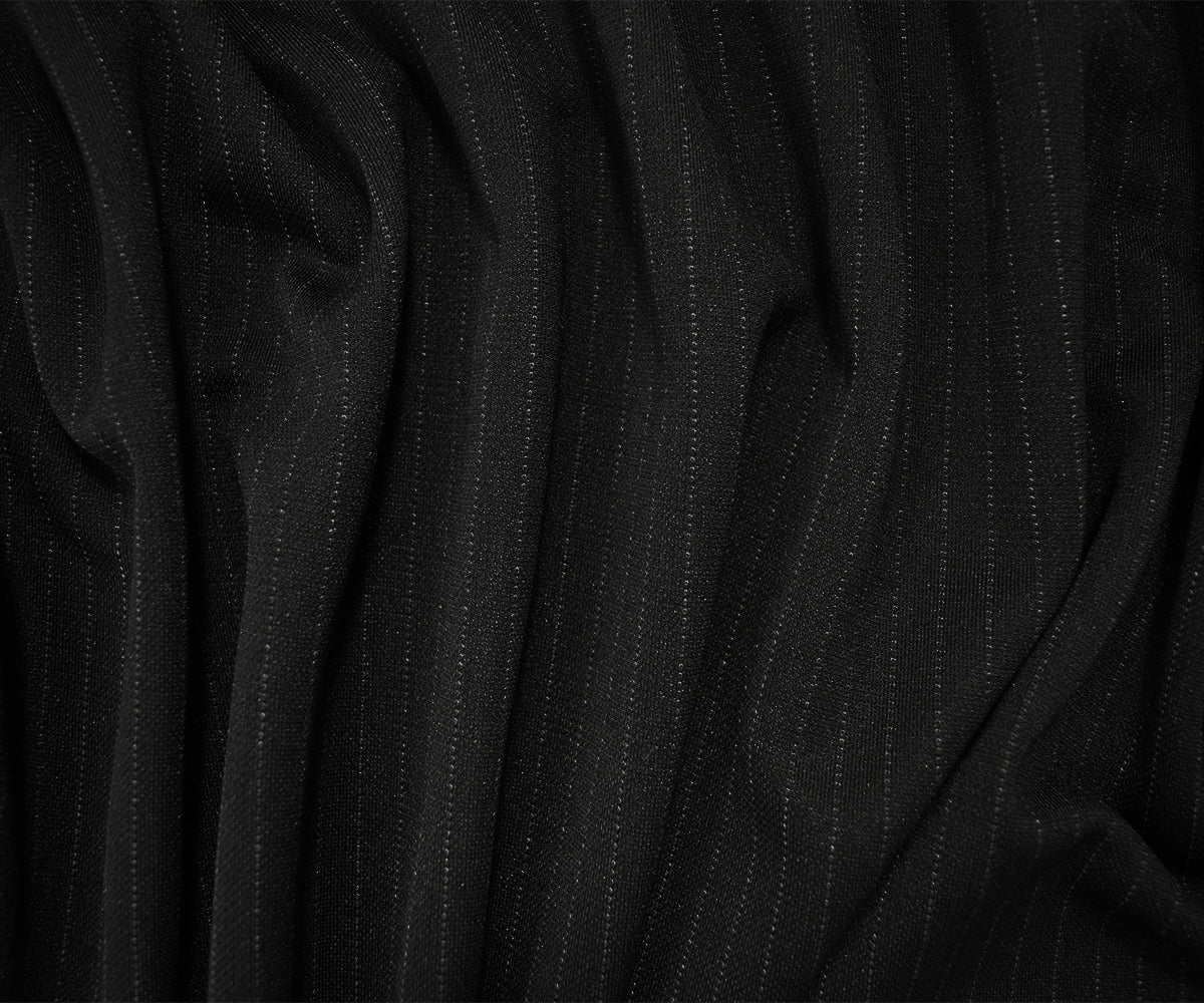 Black-Gray Poly Wool Spandex Stretch Stripe Double Knit Fabric
