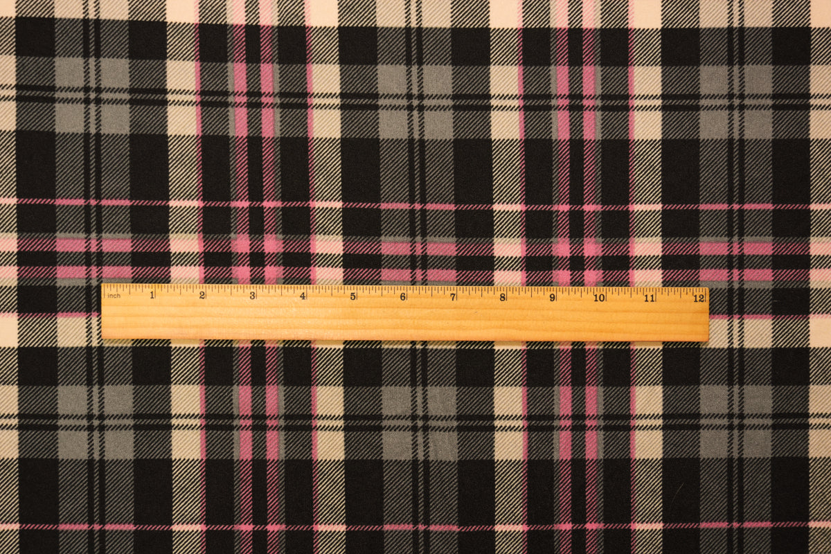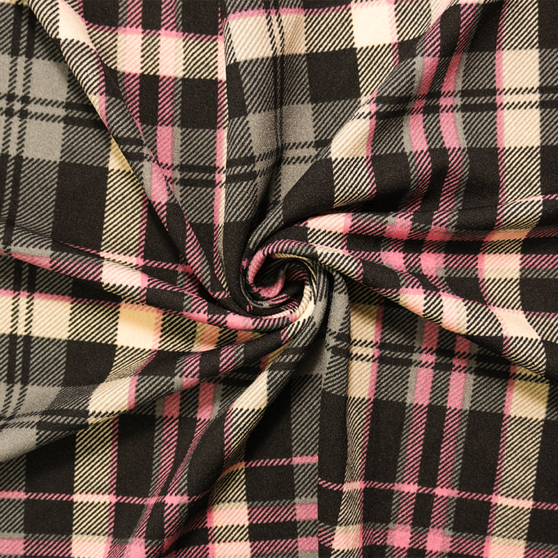 Black-Pink-Multi Poly Stretch Plaid Printed Double Knit Fabric