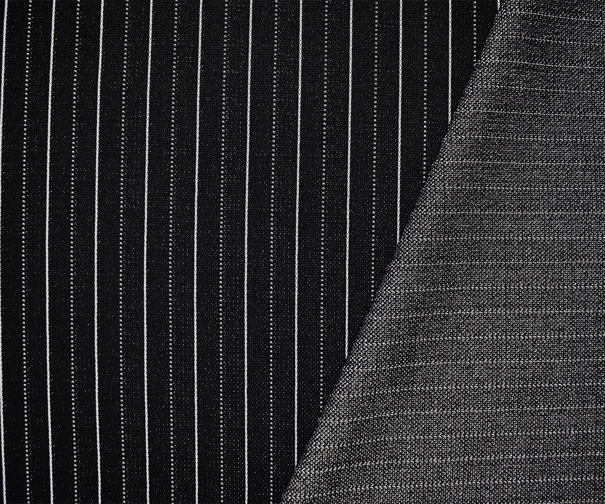 Black-White Poly Wool Spandex Stretch Stripe Double Knit Fabric