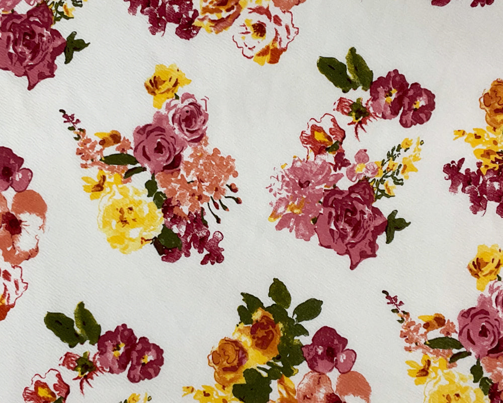 White-Red-Multi Poly Stretch Floral Printed Double Knit Fabric