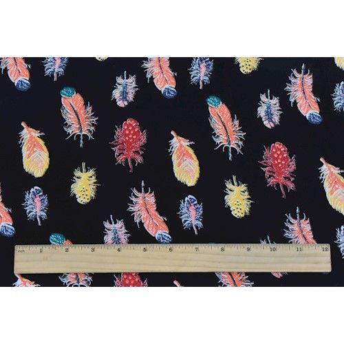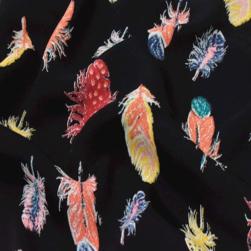 -Multi-colored feather motifs printed on a crepe faille fabric