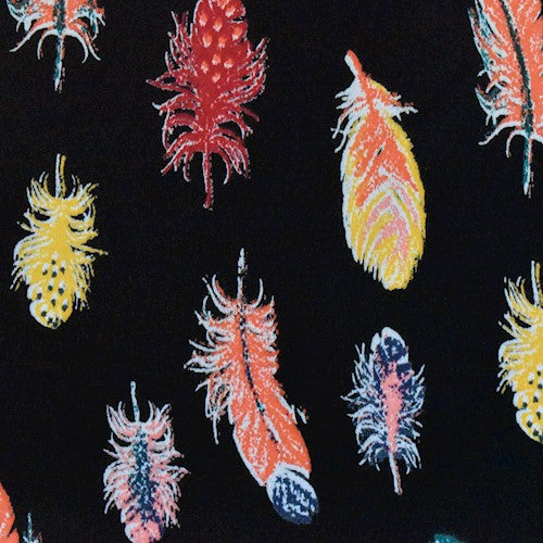 Black/Orange/Multi Feather Printed Crepe Faille Fabric