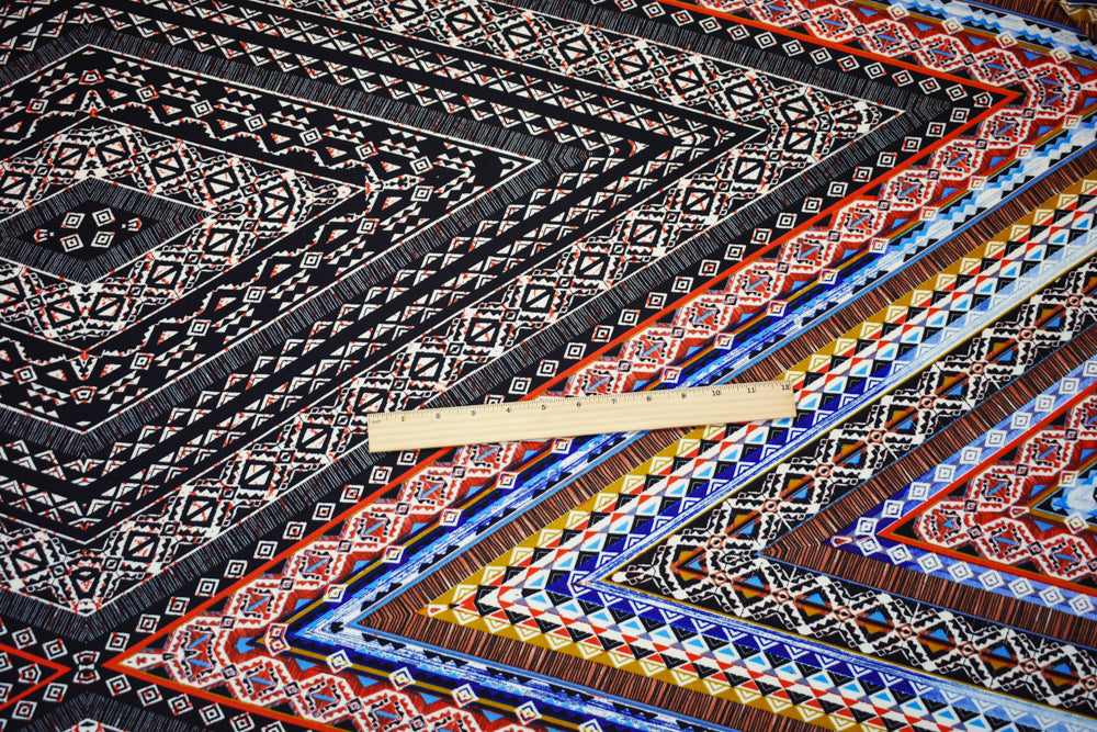 Black-Orange-Multi Poly Aztec Printed Faille Woven Fabric