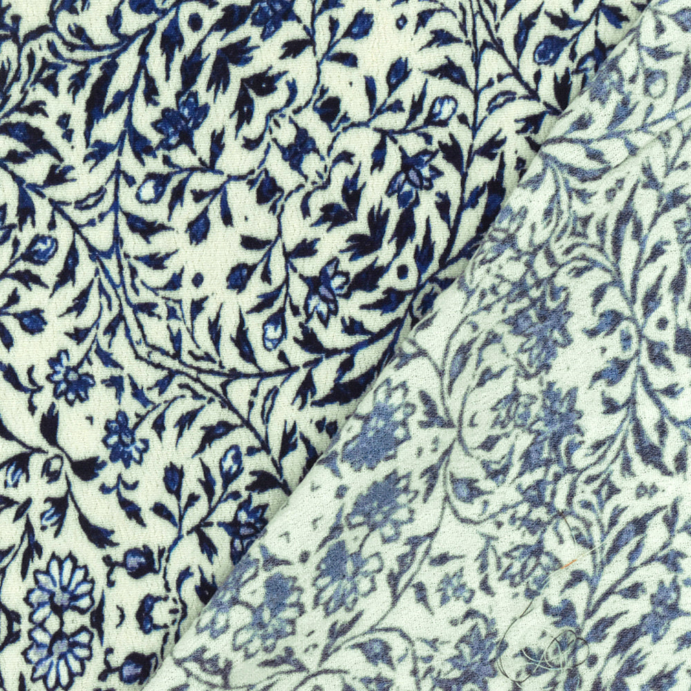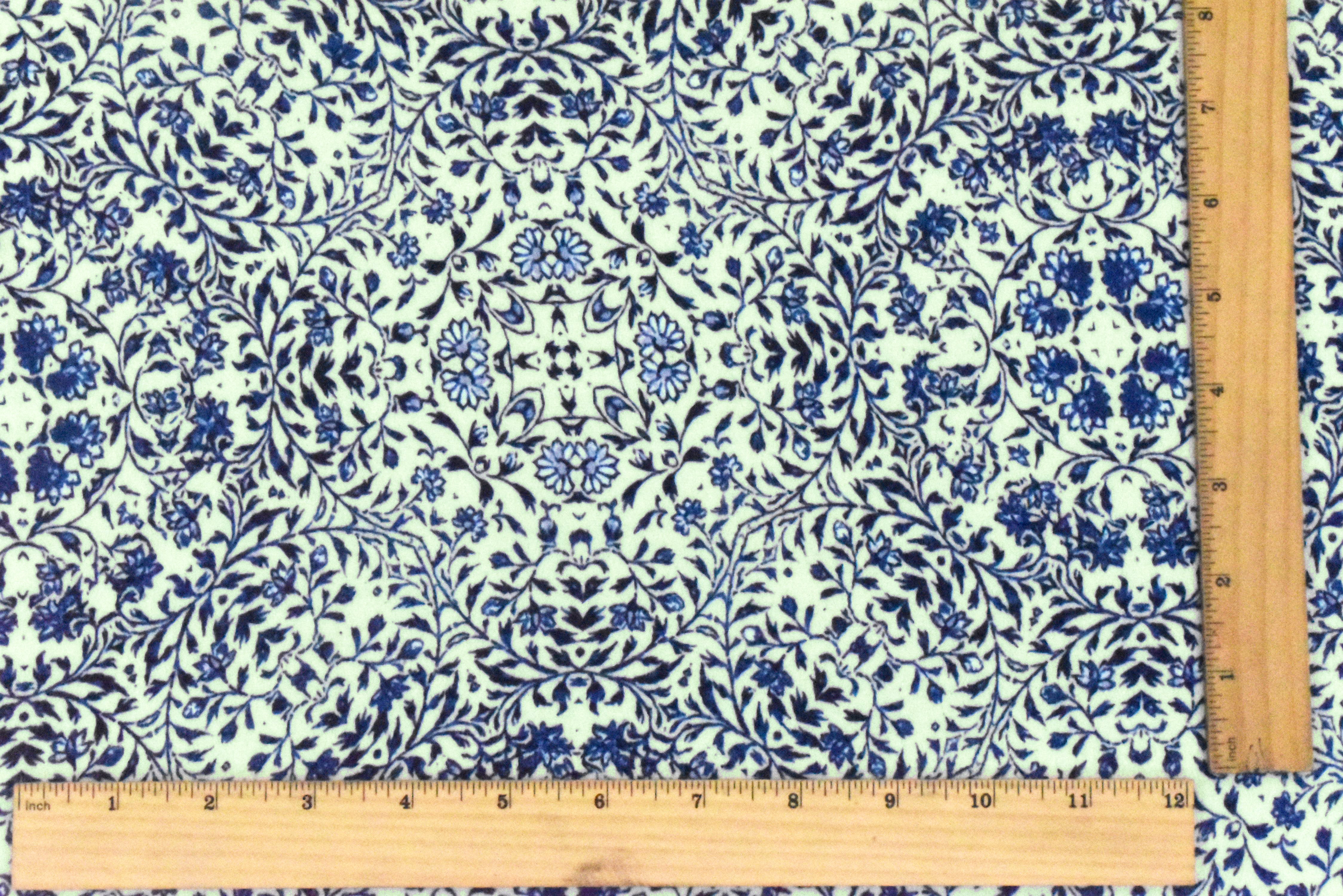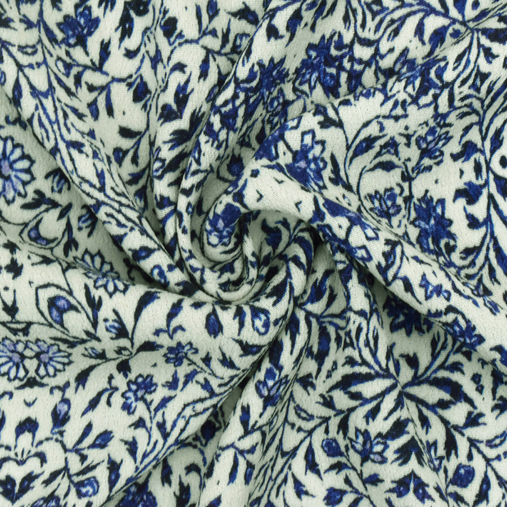 Blue-Beige Famous Designer Floral Trellis Printed Rayon Crepe Faille Fabric